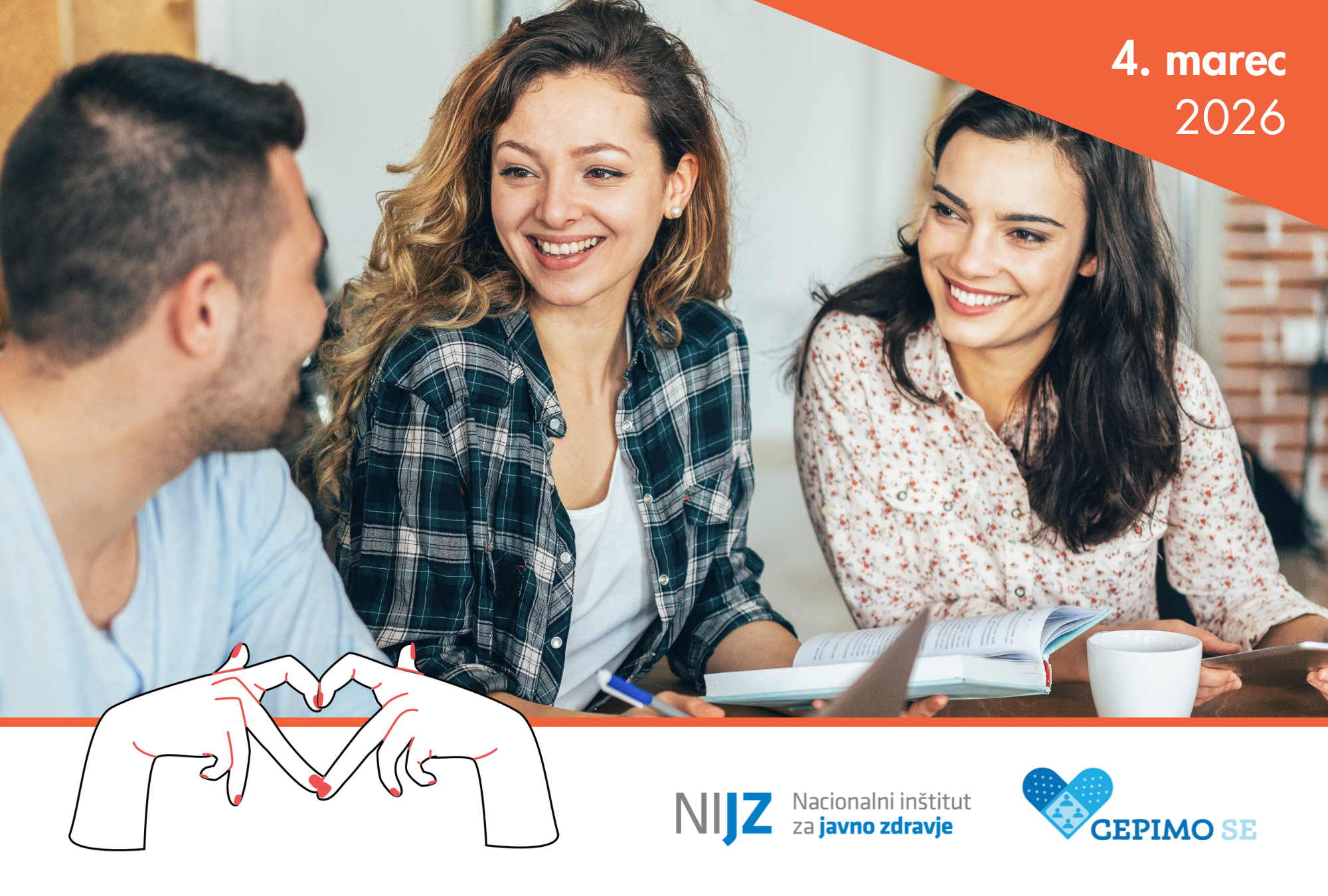 Dijake in ostale mlade, ki še niso bili cepljeni proti HPV, vabimo, da se pridružite akciji cepljenja proti HPV, ki bo pod geslom "Šeraj ljubezen, ne bolezen", potekala 4.marca 2026 v zdravstvenih domovih po vsej državi, tudi v Zdravstvenem domu Nova Gorica v Cepilnem centru od 14:30 - 17:00.
